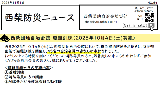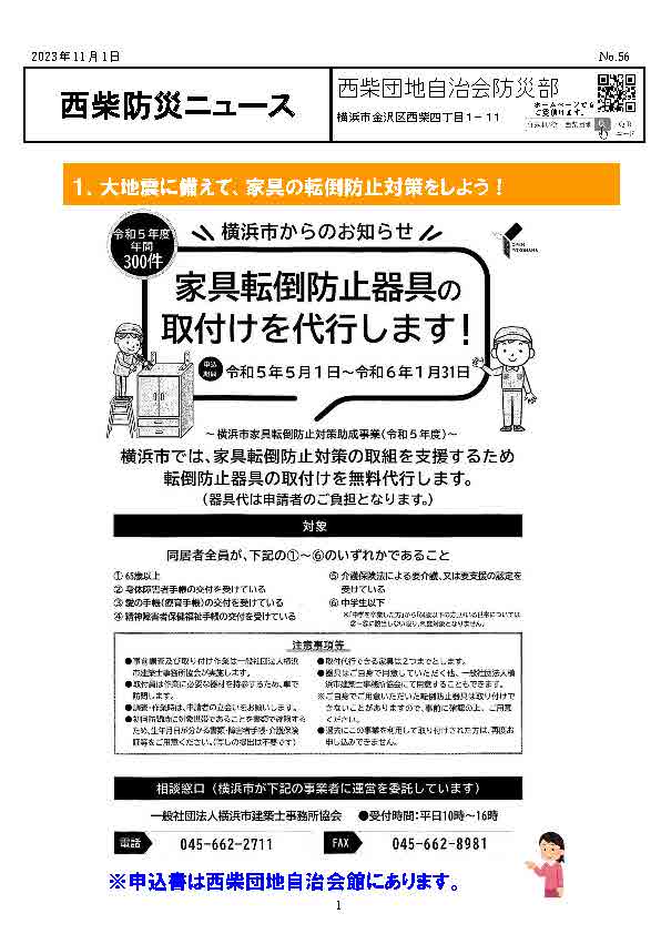 | 西柴防災ニュース 第56号 2023.11.01 クリック | ||