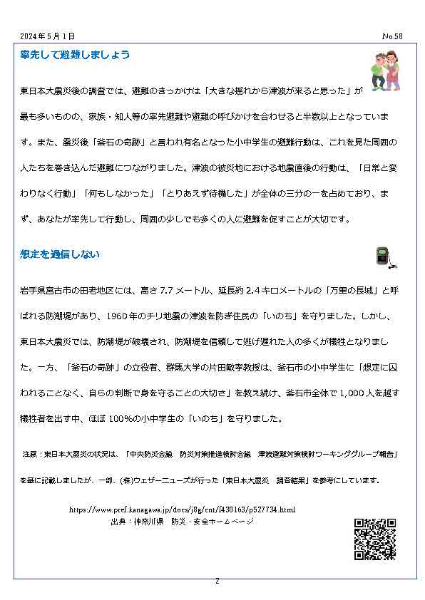 | 西柴防災ニュース 第58号 2024.05.01 クリック | ||