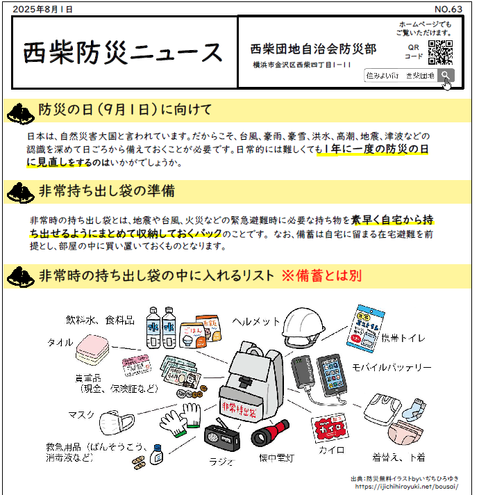 西柴団地、安全・安心な街目指して、住みよい街西柴団地 西柴防災ニュース45号を発行しました。今回のテーマは:災害で頼りになるのは”遠い親戚より近く隣人” 防災で大切な「互近所」について考えよう