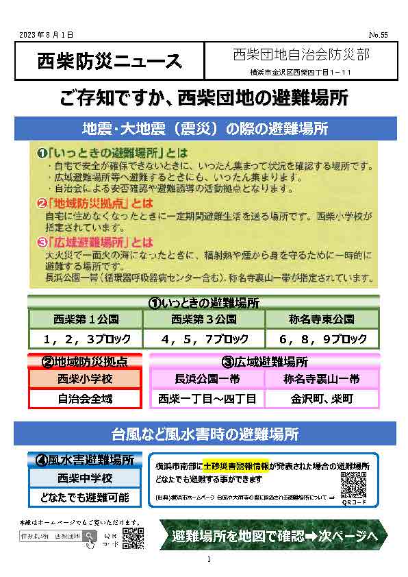 | 西柴防災ニュース 第55号 2023.08.01 クリック | ||