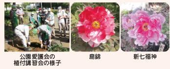公園に区の花「牡丹」を植えて、育てています。(公園愛護会) |