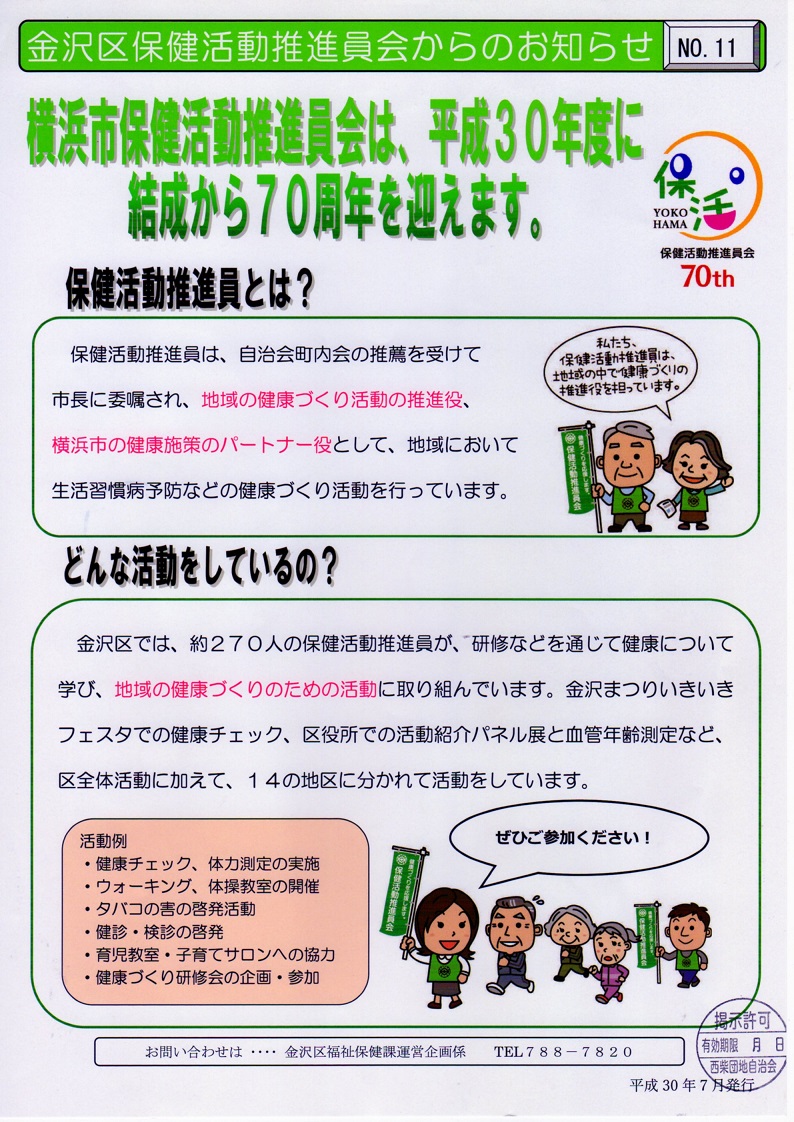 保健活動推進会 結成70周年を迎えます。平成30年度 |