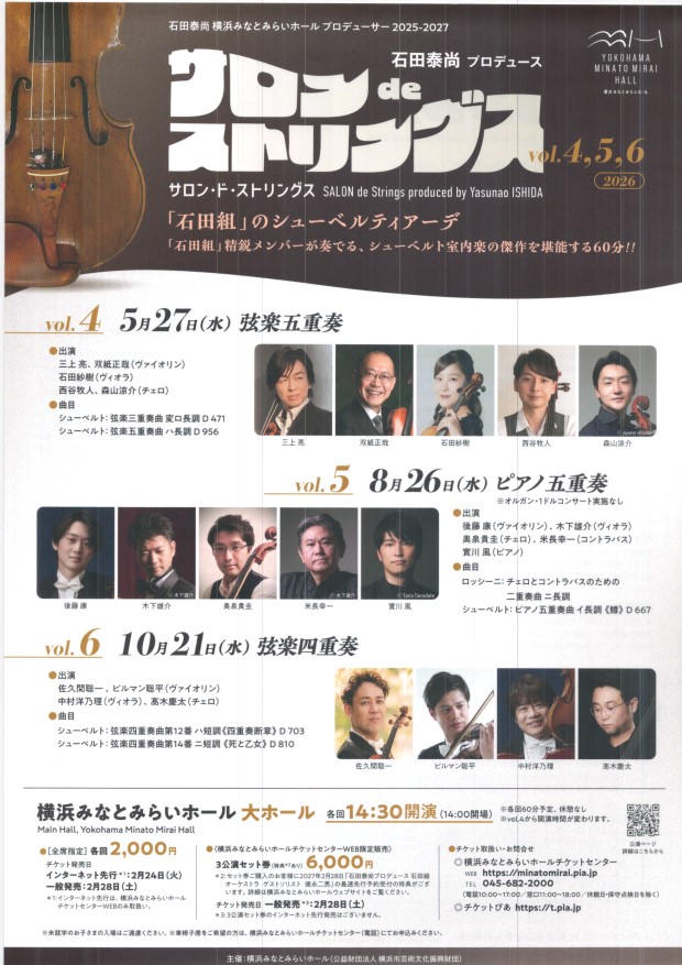 サロンdeストリングス 5月27日・10月21日 横浜みなとみらい大ホール |