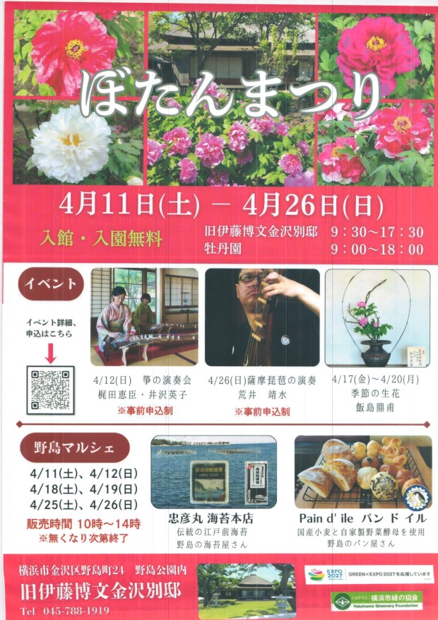 ぼたんまつり 4月11日~4月26日 琴の演奏会・薩摩琵琶の演奏・季節の生け花 |