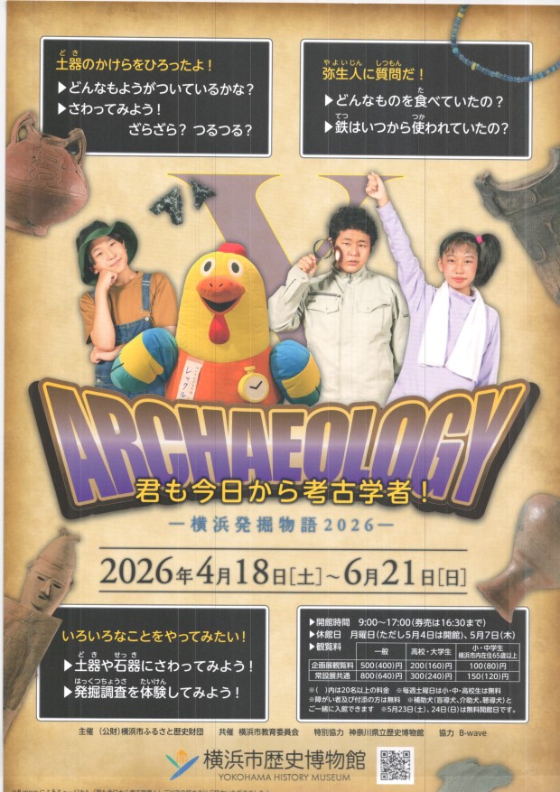君も今日から考古学者! ARCHAEOLOGY 4月18日~6月21日 横浜市歴史博物館 |