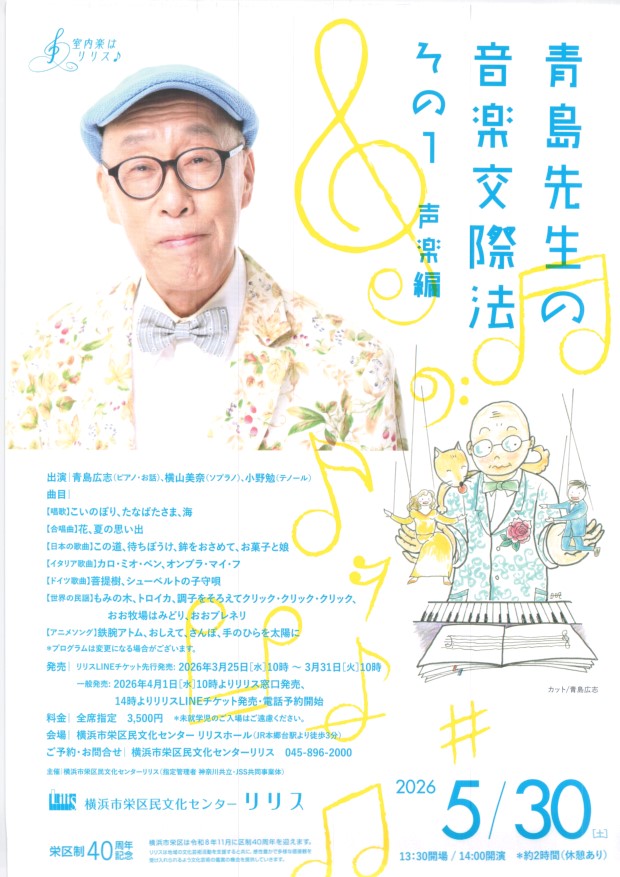 青島先生の音楽交際法 その1 声楽編 5月30日(土) 横浜市栄区民文化センター リ リス |