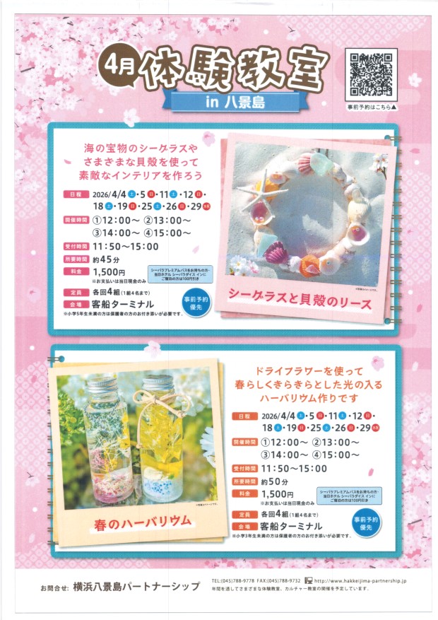 4月体験教室in 八景島 4月土日 八景島客船ターミナル |