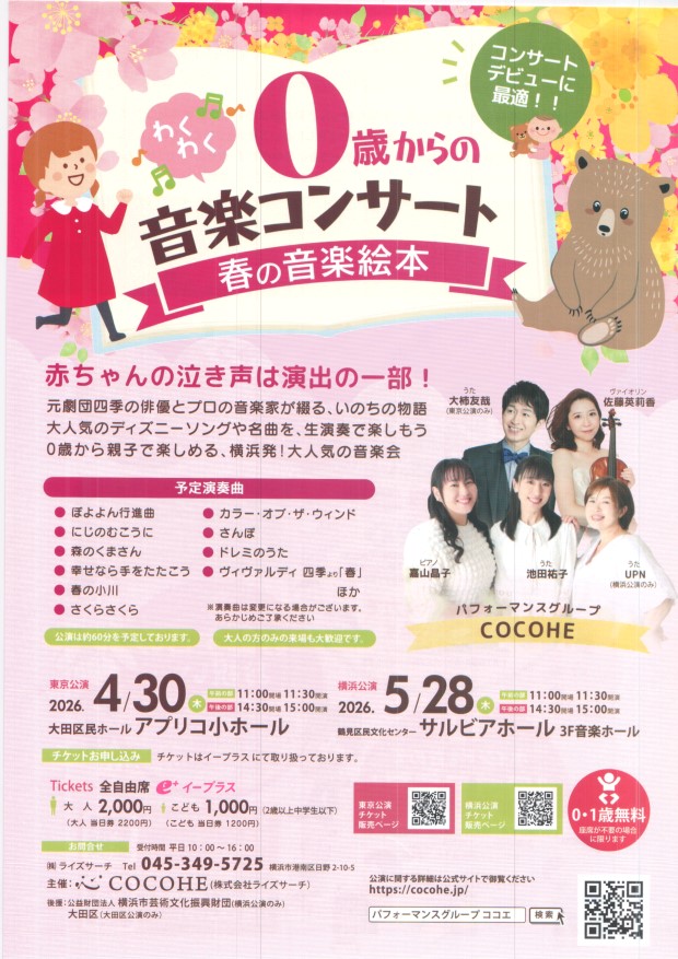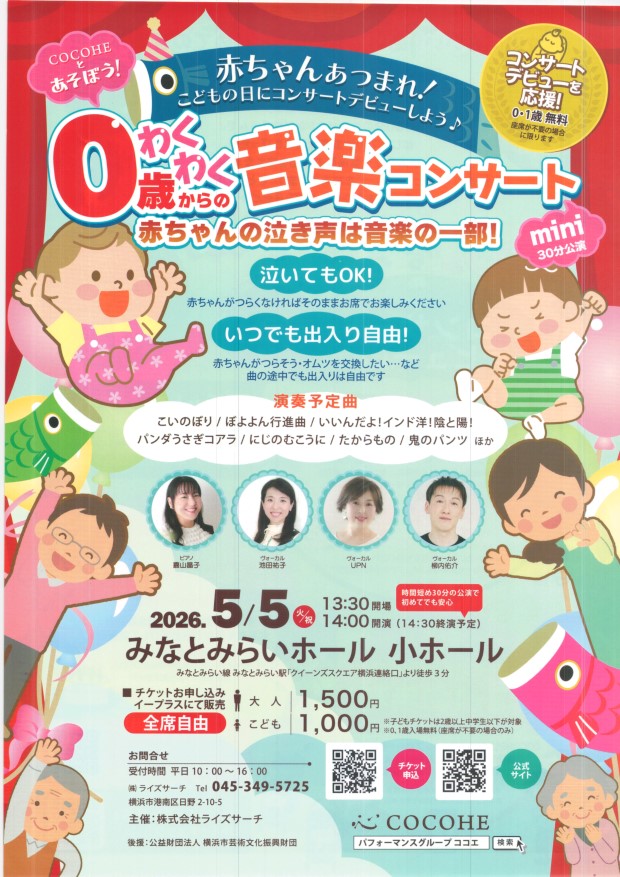 0歳からの音楽コンサート 5月5日 みなとみらい小ホール |