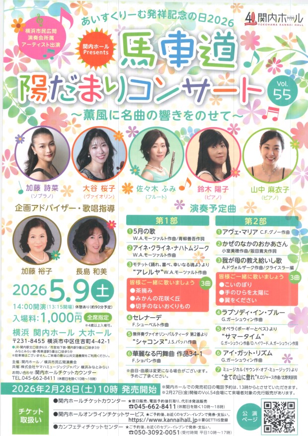 馬車道陽だまりコンサート 5月9日 14時 関内大ホール |